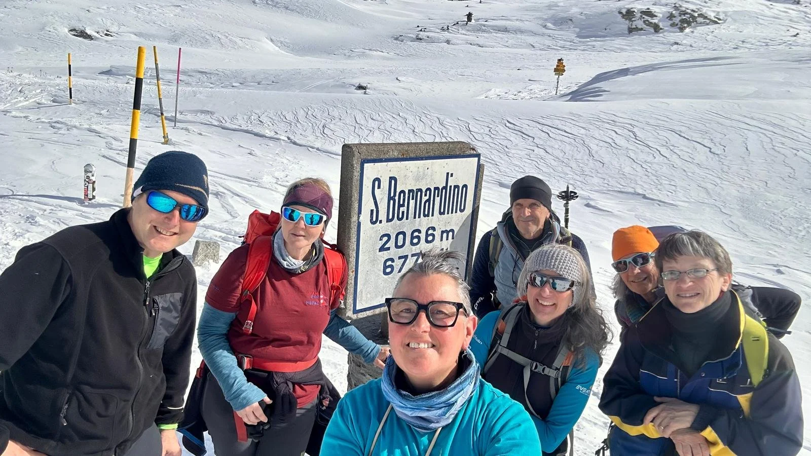 Passo del San Bernardino con le racchette, con Luca Ostini, Cinzia Lodigiani e Soci, bella giornata!